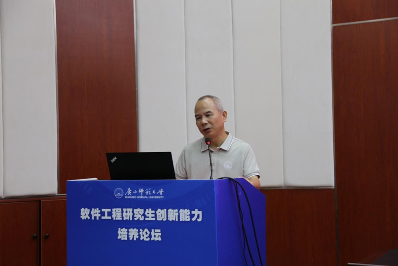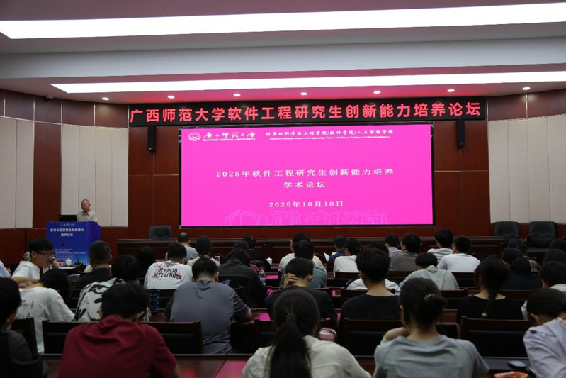 10月18日上午,由计算机科学与工程学院/软件学院/人工智能学院、教育区块链与智能技术教育部重点实验室、广西多源信息挖掘与安全重点实验室、教育智能技术广西高校工程研究中心共同举办的2025年软件工程研究生创新能力培养论坛在育才校区逸夫楼二楼报告厅举行。本次论坛邀请了来自北京航空航天大学、中南大学、湖南大学及海南大学的专家学者作专题报告,与计算机学院师生分享科学研究理论与方法、学术论文撰写、研究生创新能力培养等方面的实践经验和成果。学校党委常委、副校长李先贤教授出席论坛并致辞。