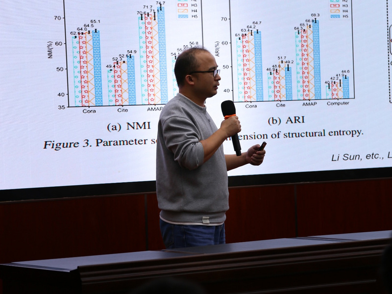 在主题报告环节,湖南大学谢鲲教授分享了基于机器学习和人工智能的监测大数据采集和分析的实践经验;北京航空航天大学许可教授从算法研究脉络概括算法发展理论与应用的两条主要路线,并分享了关于算法的思考;中南大学王森章教授围绕高水平论文撰写方法,提供了切实可行的写作策略与科研指导;海南大学涂文轩副研究员围绕研究生科研创新能力提升,分享了研究生创新能力培养的训练方案。